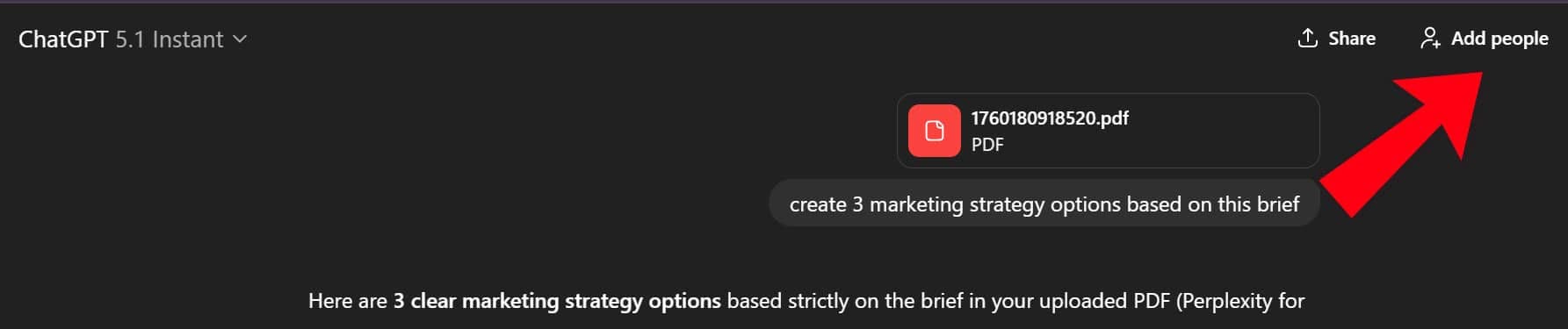 Quick Tip:Use group chats for client presentations, upload requirements, let ChatGPT draft options live, and refine together with the client watching. Everything stays organized in one place instead of scattered across email threads and Slack channels.