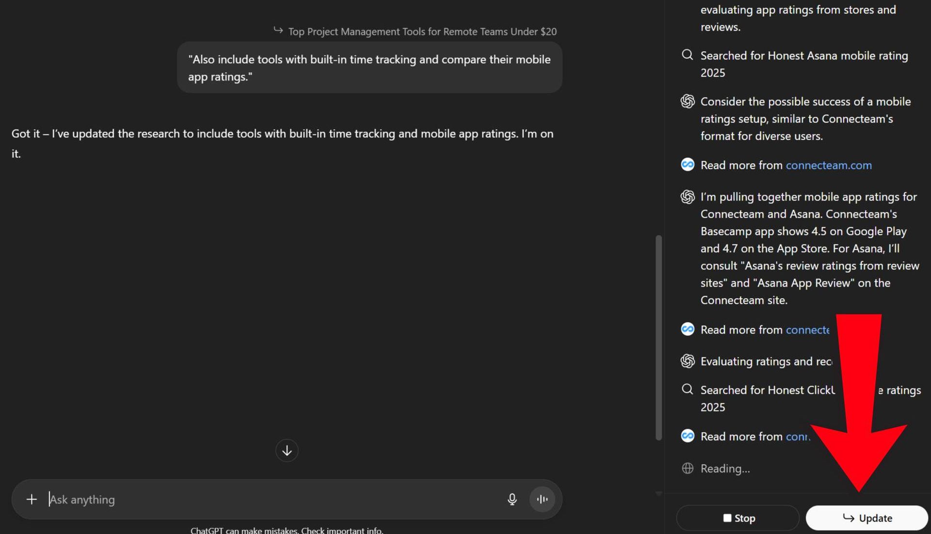 Step 5: ChatGPT instantly adjusts its research to include your new criteria without starting over.