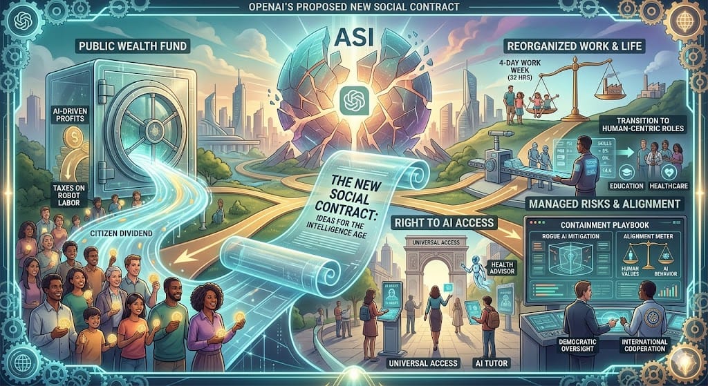 OpenAI has released a 13-page policy blueprint outlining how governments can manage the societal shift toward superintelligence β with proposals ranging from taxing AI-generated profits to establishing a national wealth fund and shortening the standard workweek.